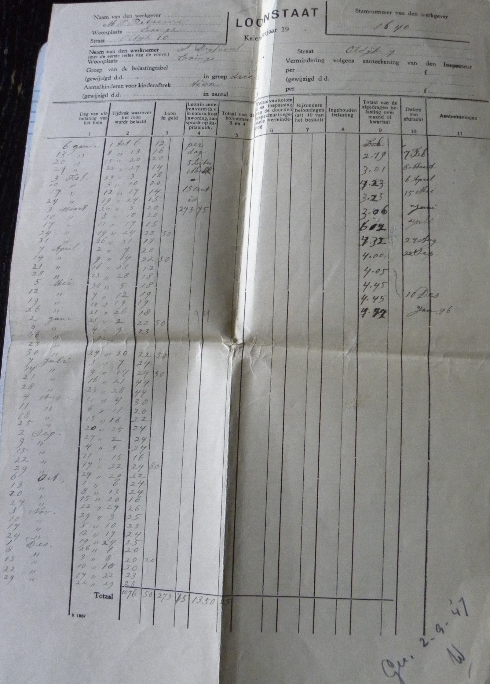 loonstaat Sijtze Drijfhout 1945/1946 (coll. fam. Ritzema)
