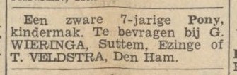 - Trientje Wierenga, geboren 30 april 1924. Trientje trouwde in 1948 met Wolter Bonnema uit Marum. Ze overleed in 1973 in Oldekerk.