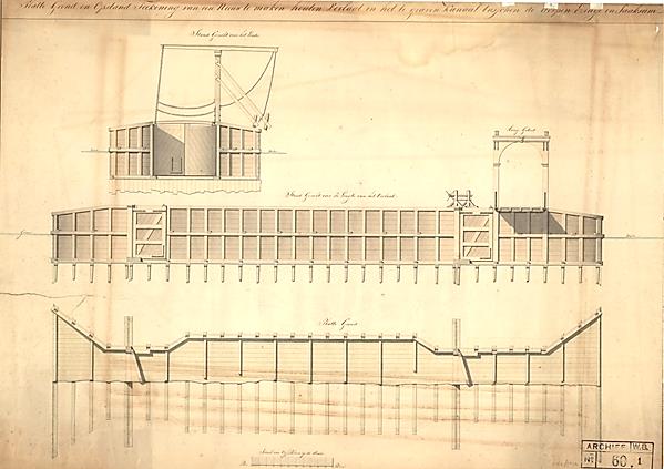 In de aanbesteding van het graven van het Oldehoofsche kanaal is dan ook het bouwen van een vallaat opgenomen. Hieronder de bouwtekeningen en het bestek voor het bouwen van het vallaat (Groninger Archieven):